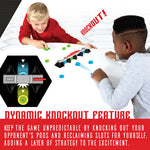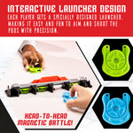 Each player loads their Mag-Pods, pulls back the launcher, and fires toward the four slot rail. Claim all slots first — or knock-out your opponent’s pod to take over their place. With trick-shot combos and magnetic dynamics, it’s an intense game of reaction and accuracy.