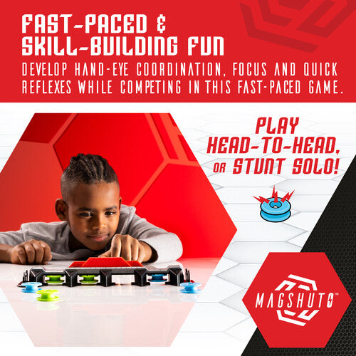 Head-to-head magnetic launching action for speed, skill and strategy.