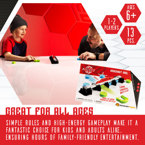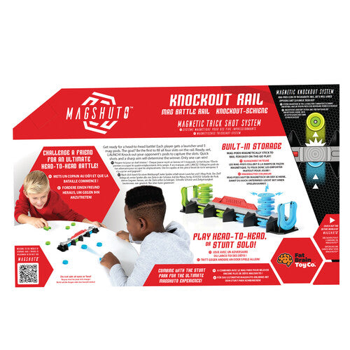 What’s Inside: Knockout rail, two launchers, ten magnetic Mag-Pods, and reusable sticky pads for secure play.